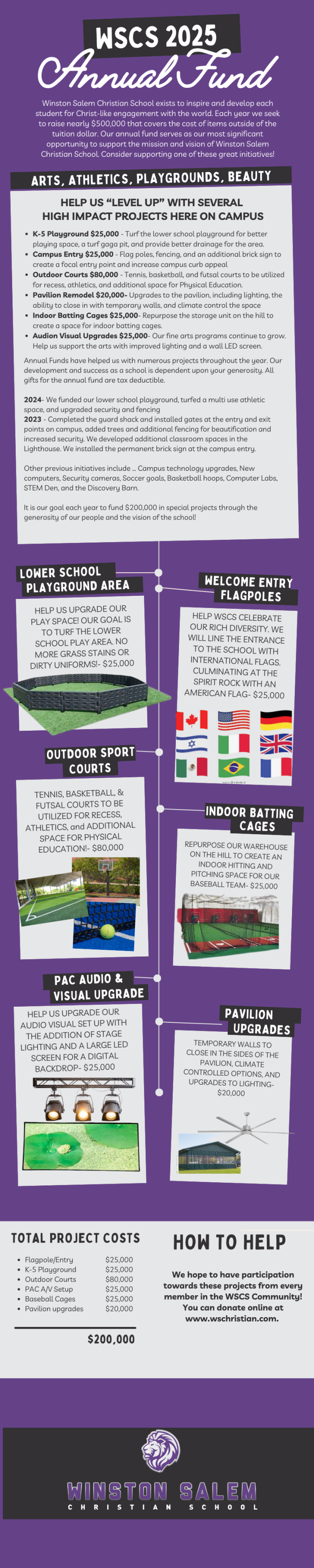 We are so excited to be planning for our future through our annual fund. We have several projects planned that will directly benefit our children. See the exciting things we are planning to use these funds for below!